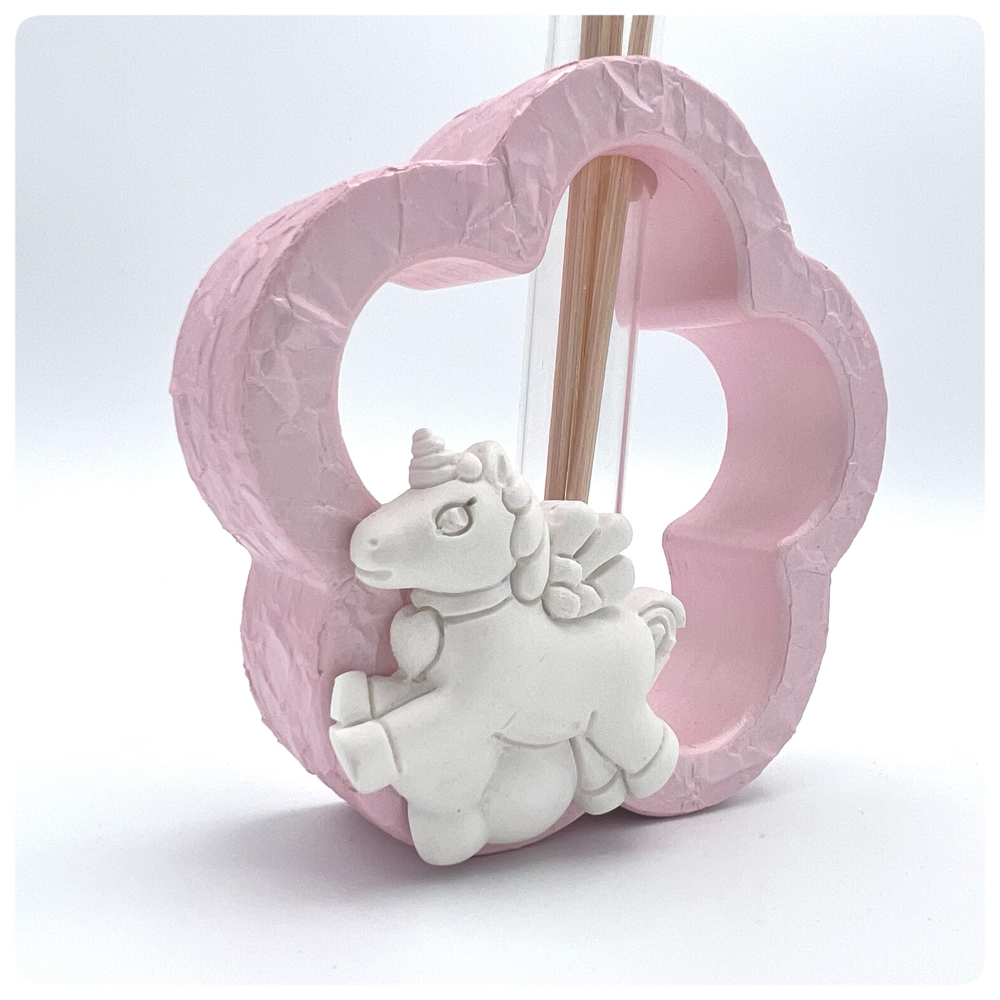 Profumatore a forma di fiore con applicazione di un unicorno. Simpatica idea regalo per nascita o idea per bomboniere da battesimo . Una bomboniera utile e artigianale non può che far piacere a chi la riceverà!